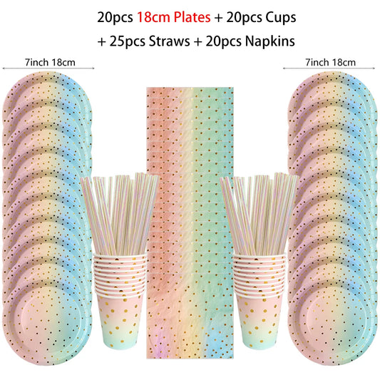 Rainbow Birthday Disposable Tableware Gold Dot